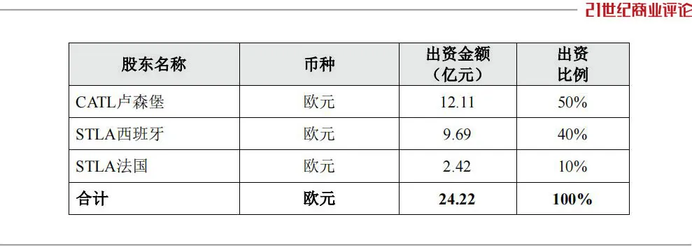 据最新公告,宁德时代通过子公司CATL卢森堡,与Stellantis子公司STLA西班牙、STLA法国,共同出资成立公司。其中,宁德时代出资12.11亿欧元,持股50%。