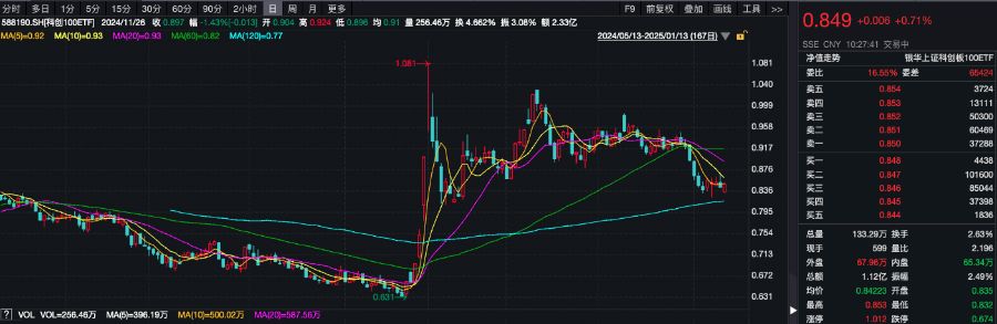 科创100ETF(588190)紧密跟踪科创100指数。该指数从上海证券交易所科创板中选取市值中等且流动性较好的100只证券作为样本,以反映科创板市场不同市值规模上市公司证券的整体表现。