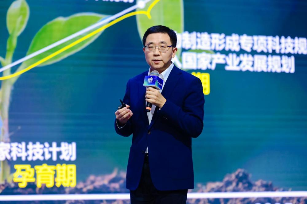 国家开发投资集团首席科学家的李寅教授以《生物制造——高科技,大产业,新投资》为主题进行演讲。他提出,现在的生物制造已经发展到了以合成生物学高科技支撑的新阶段,是万亿美元级的大赛道。工业革命200年以来的化工行业,将在未来40年被生物制造逐步取代。农业生物化、化学工业化都是当前的新质生产力,这个大产业的发展从社会需求来看是碳达峰和碳中和对产业的驱动,会给未来带来财富的绿色增长。