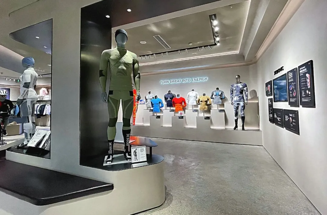 这里是三夫旗下的瑞士运动黑科技品牌X-BIONIC在国内最大的旗舰店,面积1100平米,上下两层,罗列了品牌的全系服饰。