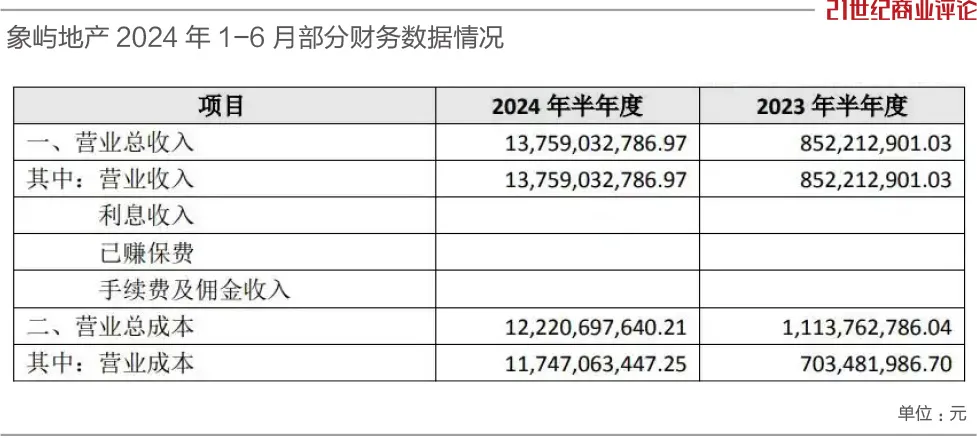 2024年1-6月,房地产板块营收135.24亿元,同比增长20倍,并扭亏为盈,挣到 6.47亿元。
