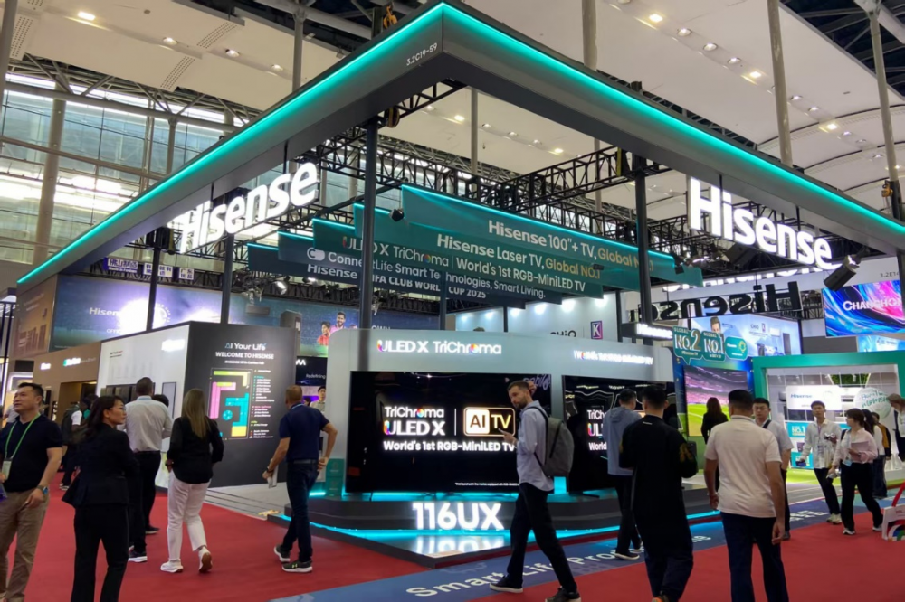 AI正在成为智能电视原生能力,推动视听、交互、服务体验全面升级。作为智能电视引领者,海信坚持研发全球首发性技术,在视觉友好画质、听觉良好音质、场景化交互等方面行业领先。展会现场展示的全球领先的116英寸RGB-Mini LED电视UX,在新一代信芯AI画质芯片H7加持下,光色控制精度达传统液晶3倍以上,实现了液晶显示从传统的单一背光到 RGB 三色背光、从单一亮度控制到光色同控的重大跨越,为全球液晶显示产业的技术革命明确了全新的方向。在全球范围内,海信已率先实现RGB三维控色液晶显示技术的量产。
