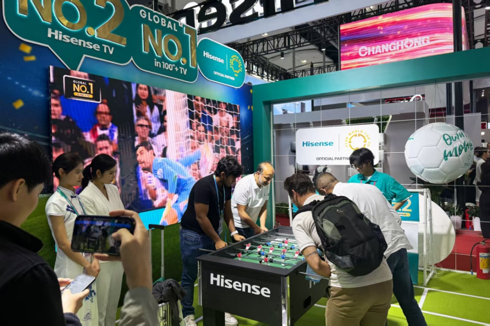 作为2025世俱杯全球官方合作伙伴,海信联合国际足联打造了世俱杯AI全景世俱杯体验,为用户带来差异化观赛体验。海信展台辟出专门区域设置足球互动游戏,展现海信电视的AI技术实力,吸引众多客商参与,也呼应了海信与体育和足球的连接,凸显了海信在全球化布局中注重自主品牌建设的力量。