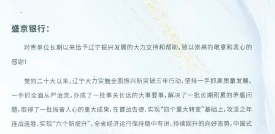 展望未来,盛京银行将始终坚守“市民的银行、城市的银行、国有的银行”定位,持续强化金融供给能力,以更优质的金融服务赋能实体经济,为辽宁打赢全面振兴新突破决胜之年决胜之战贡献更大的金融力量。
