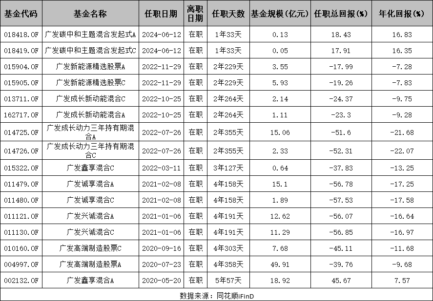 业绩不佳自然也带来了管理规模的下降,从2021年Q2的421.74亿元已经降至2025年Q1的148.34亿元。其中广发高端制造股票A类+C类贡献了约57.6亿元,约占总规模的1/3。