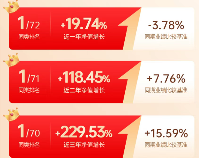 广发基金当时发布的宣传物料显示,郑澄然在管广发鑫享过去3年累计回报超220%,超越业绩比较基准200%,近1年、2年、3年排名分别位列同类1/72、1/71、1/70。