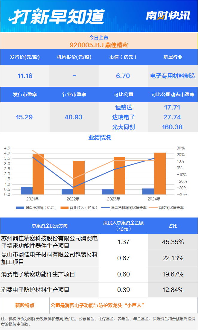 7月31日,有一只新股上市,为北交所的鼎佳精密(920005.BJ)。该公司主要从事消费电子功能性产品及防护性产品的设计、研发、生产与销售。产品主要应用于笔记本电脑、平板电脑、智能手机、一体电脑、服务器、显示器、AR/VR、智能游戏机等消费电子产品。