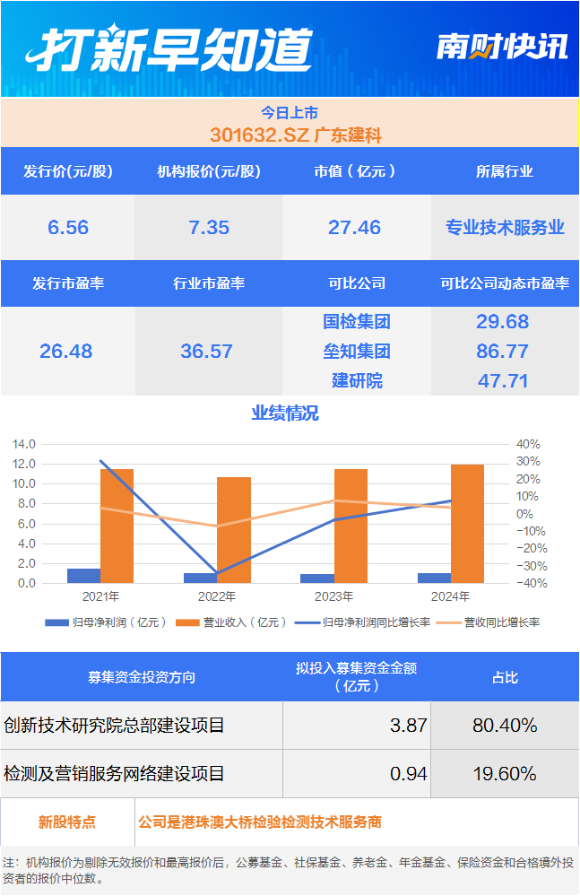 8月12日,有一只新股上市,为创业板的广东建科(301632.SZ)。