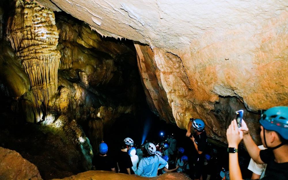 ▲美团黑钻会员体验官探秘地下溶洞(摄影:王岩)