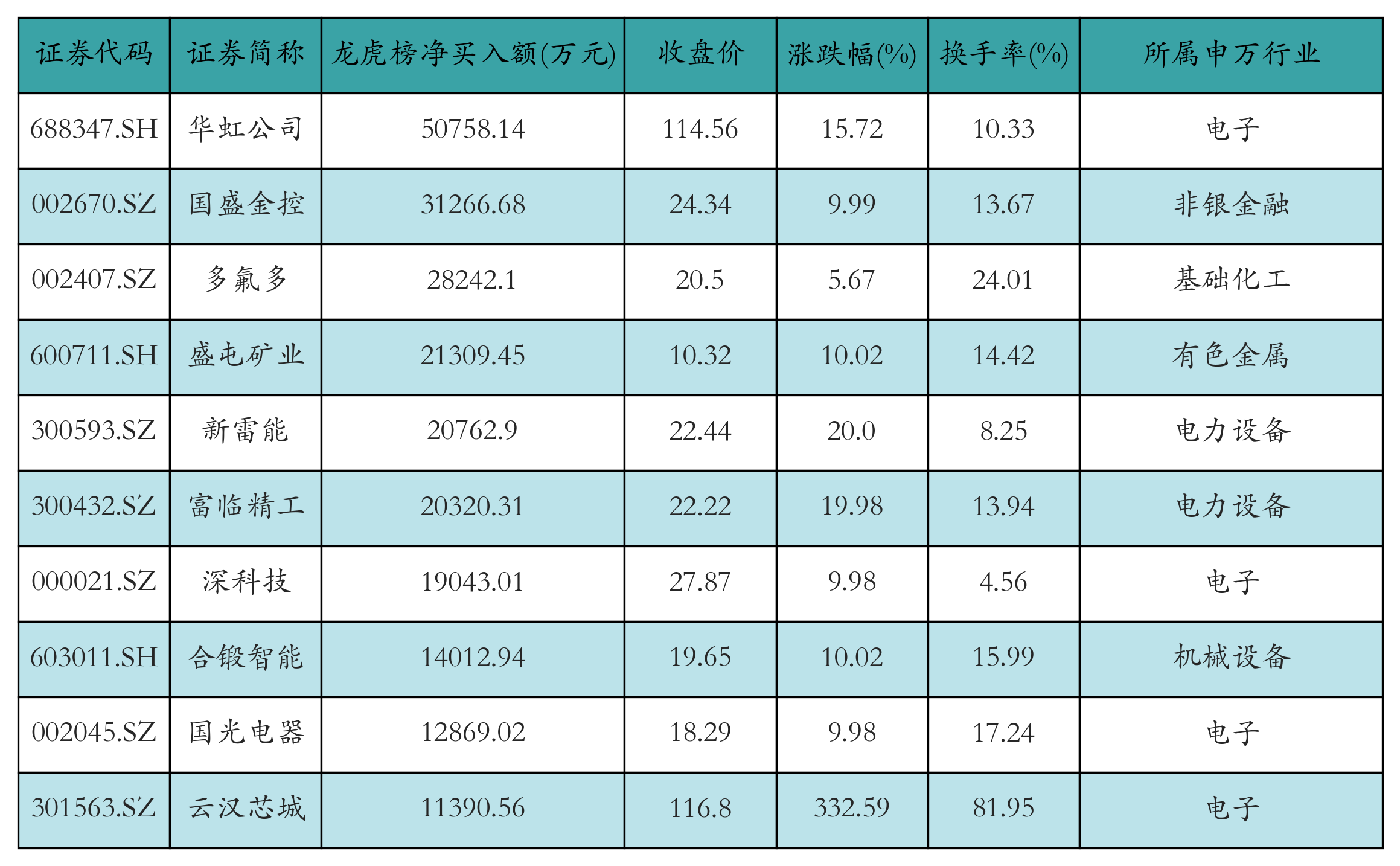 两市共有3441只个股有融资资金买入,其中新易盛、胜宏科技、中芯国际排名前三,买入金额分别28.53亿元、28.17亿元、27.98亿元。融资买入额前10个股详情见下表: