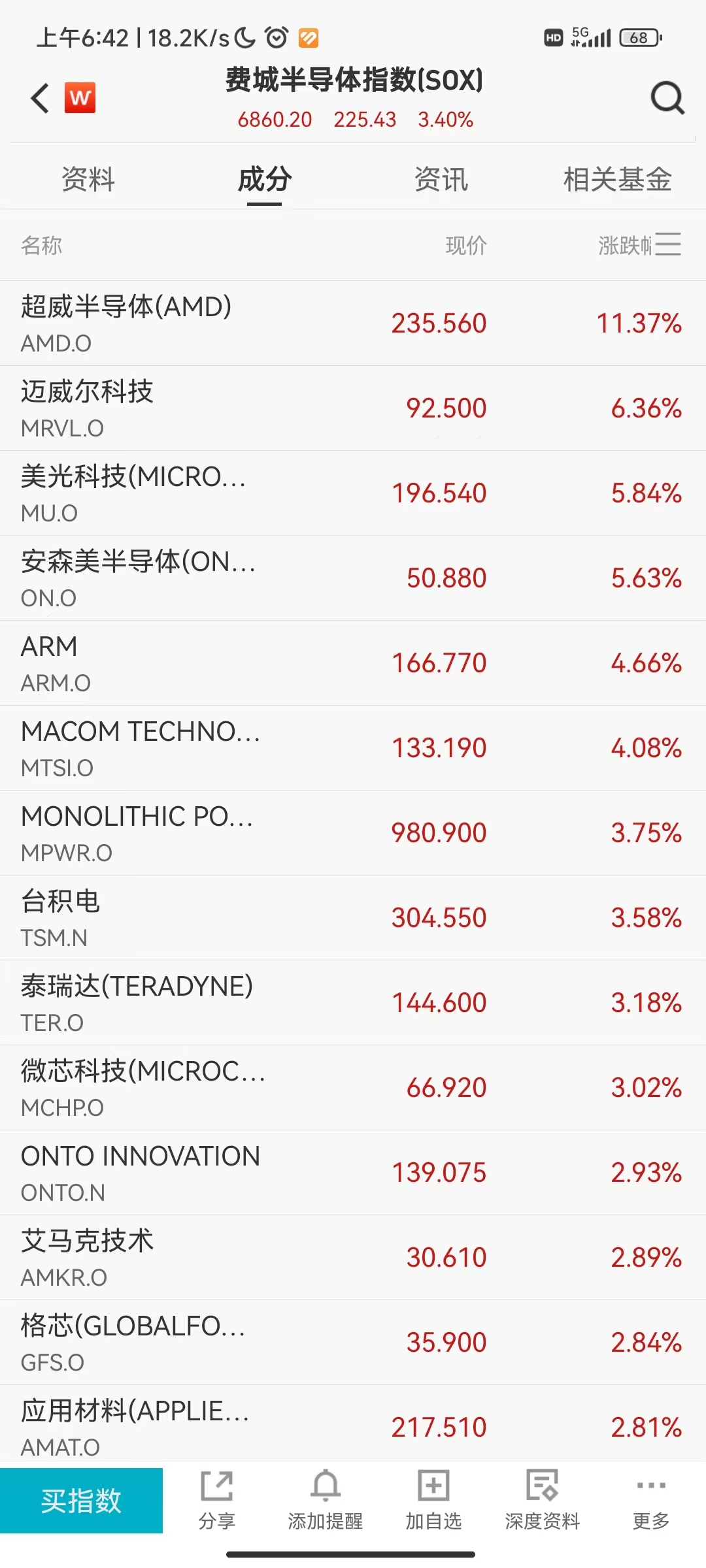 此外,以半导体为主的科技板块集体大涨。费城半导体指数暴涨超3%。