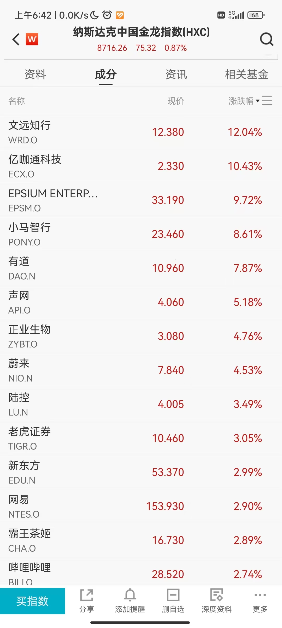 热门中概股全线走高,文远知行涨近12%,小马智行涨超8%,蔚来涨逾4%。