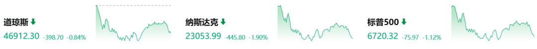 大型科技股普跌,超威半导体跌超7%,英伟达跌幅3.65%,市值一夜蒸发1733亿美元(约合人民币12337.92亿元)。特斯拉、高通跌逾3%,甲骨文、亚马逊、Meta跌超2%。微软已连续7个交易日下跌,创2022年以来最长连跌天数;Robinhood跌近11%,创3月份以来最差单日表现;多邻国因业绩指引不及预期,股价暴跌25%,创有史以来最大单日跌幅。