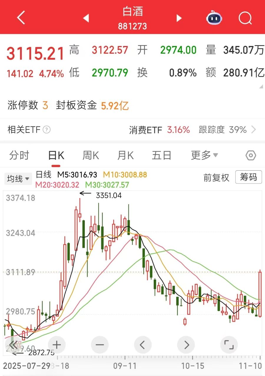 值得注意的是,白酒所属食品饮料板块(801120.SL)在申万行业分类中表现垫底,截至11月10日,该板块年内下跌3.03%。