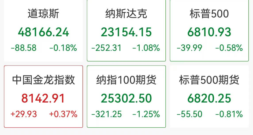 11月13日,美股三大指数开盘集体下跌。截至北京时间23:00,道指跌0.18%,纳指跌1.08%,标普500指数跌0.58%。