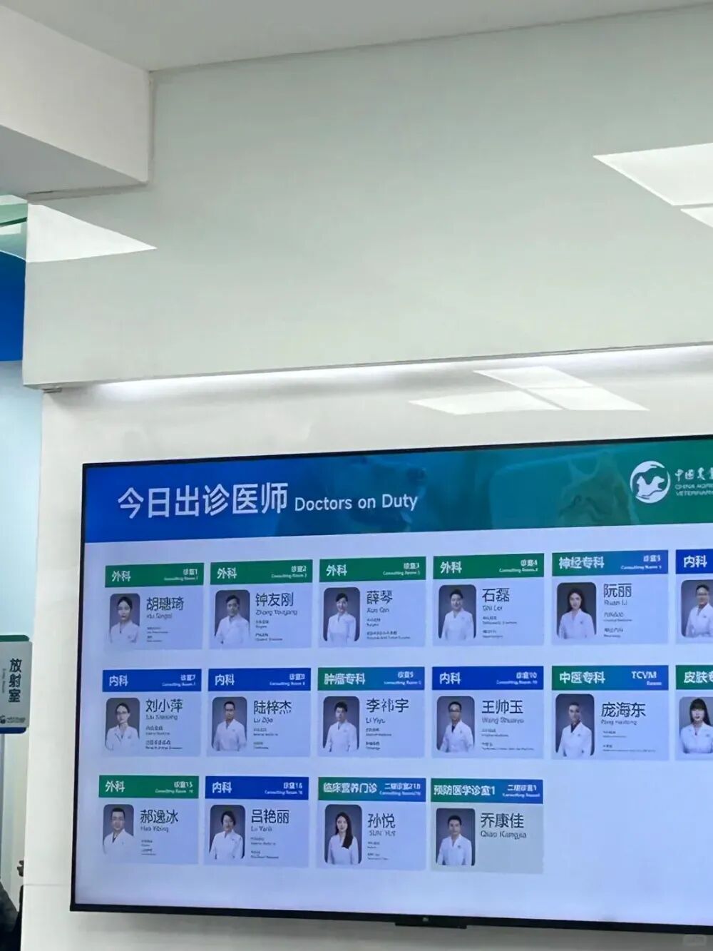 抬头望去,眼前的电视大屏上还轮播着当日出诊医生的信息,内科、外科、神经科、行为学等多个领域的动物医学专家的坐镇让家属们成功把心放回肚子里。