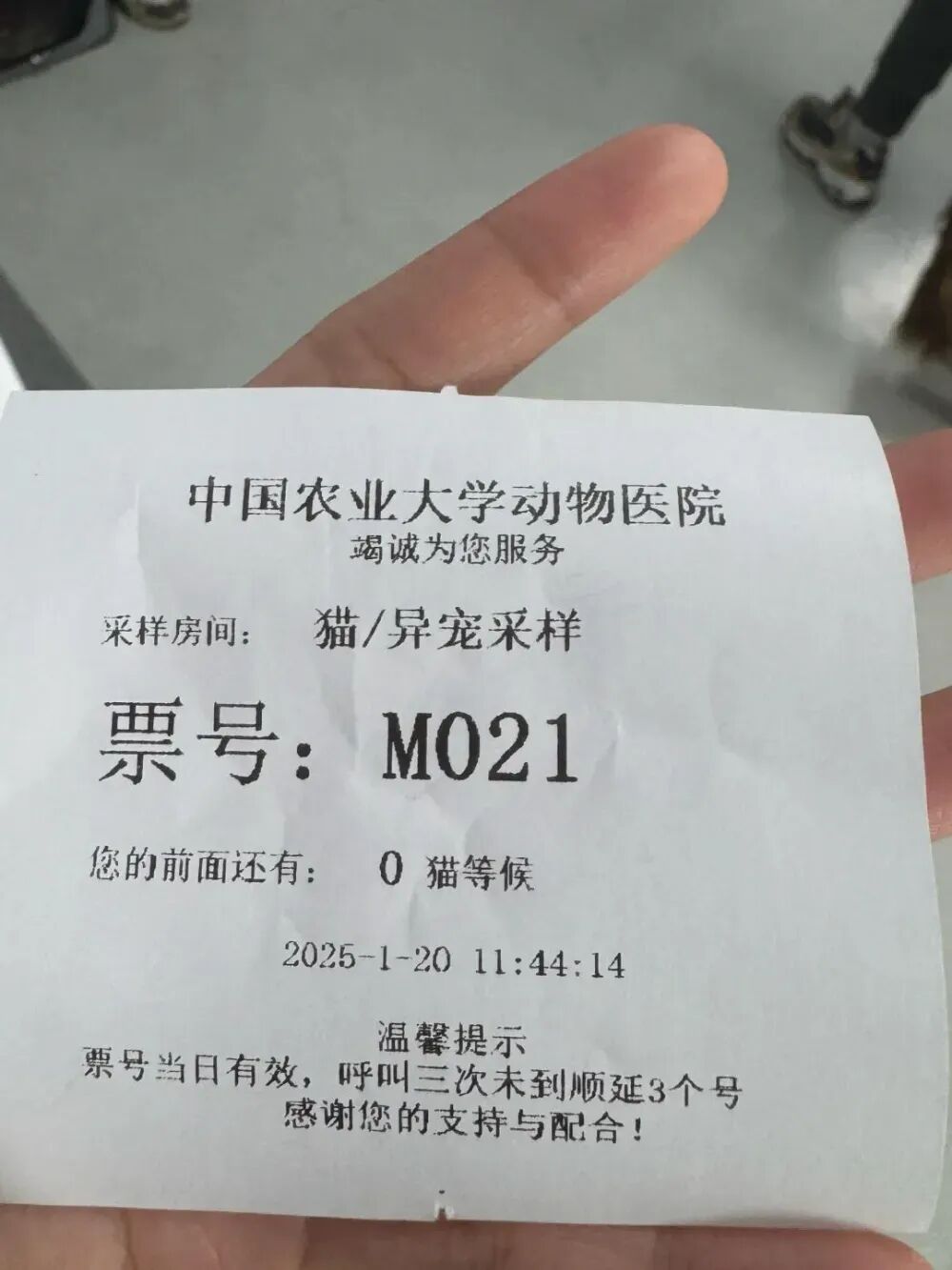步履匆匆的家属们在人群中排队、穿梭,看着手上拿着的挂号回执单上注明的“前方有1猫等候”的字眼,只觉得好笑又温暖。