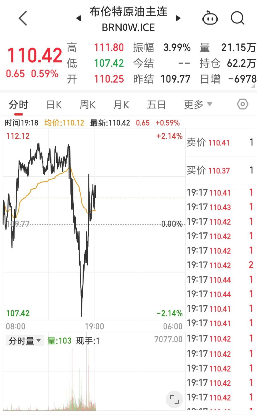 截至发稿,布伦特原油涨0.59%,报110.42美元/桶,WTI原油涨2.05%,报114.72美元/桶。