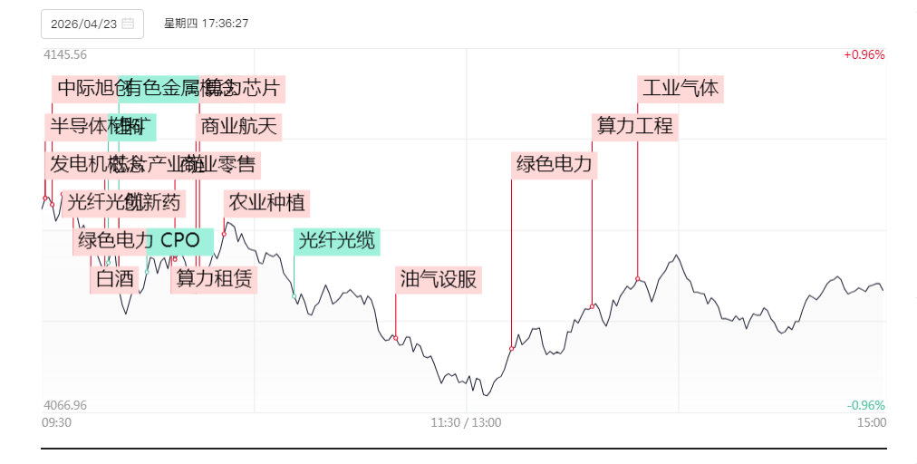 受海外利空消息影响,A股三大指数震荡回落,截至收盘,沪指跌0.32%,报4093.25点,创业板指跌0.87%,报3720.25点。两市成交2.82万亿元(日增2443亿元)。个股跌多涨少,仅1330家红盘,涨停58家,跌停30家。白酒、煤炭、油气开采、电力等板块涨幅靠前,贵金属、锂电池、通信设备跌幅靠前。