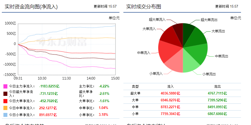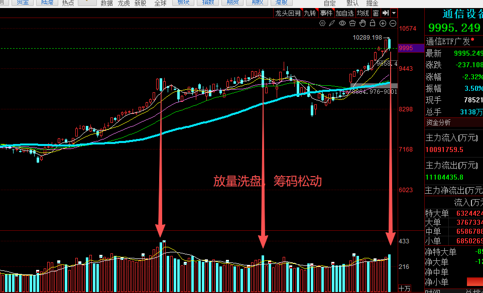 2、自4月8号以来,市场首次发出风险信号——大放量急洗盘。盘中一度3500多亿元的增量资金砸盘,这是本轮主力做多筹码第一次出现大松动兑现(散户很难做到3500亿元的极端增量)。