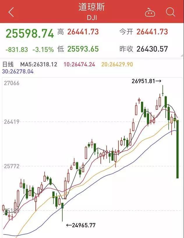 道指暴跌超800点,跌3.15%,创八个月来最大单日跌幅;