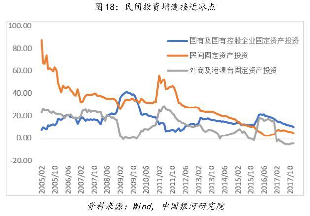 在高昂的融资成本和逼仄的投资渠道面前,这两年占比过半的民间投资早已接近冰点(如图18所示),相对而言国有或国有控股企业20%左右的投资增速显得平稳许多。