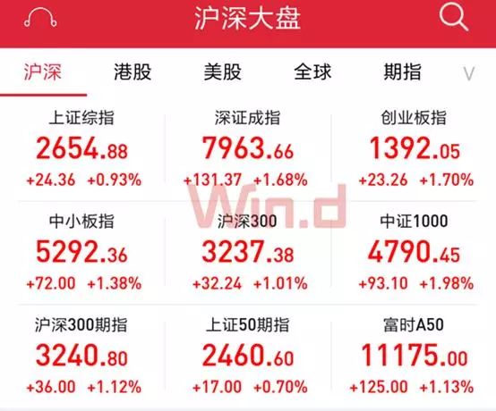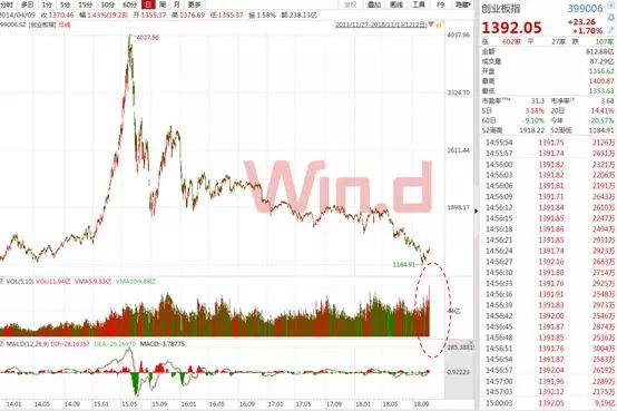 截止当日收盘,上证综指涨0.93%报2654.88点,深证成指涨1.68%报7963.66点,一度站上8000点;值得注意的是,创业板指收涨1.7%报1392.05点,一度收复1400点,成交量创下历史天量。