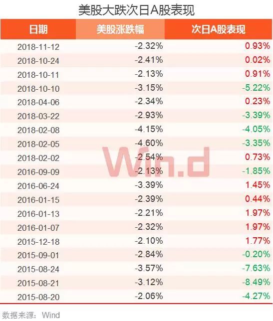 从历史数据来看,从2015年至今,道指单日跌幅超过2%的共计19个交易日(包含本次)。其中,A股在次交易日共收跌9次,下跌概率为47%。