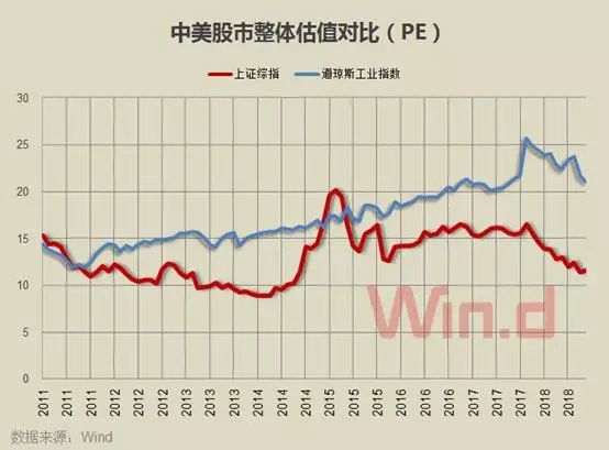 从中美股市估值对比看,以道琼斯指数为代表的美股市场,现在面临美联储不断加息的经济背景,同时美股已经走了十年牛市,美股整体估值处于高位。而A股市场经历3年半的持续调整,目前估值已经处于历史底部区域。