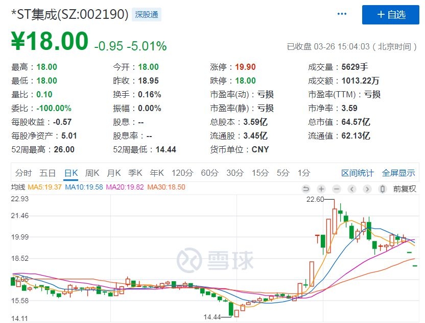 而后,成飞集成(002190)于3月25日成为第二家遭*ST的上市公司。