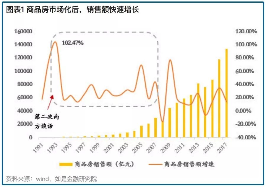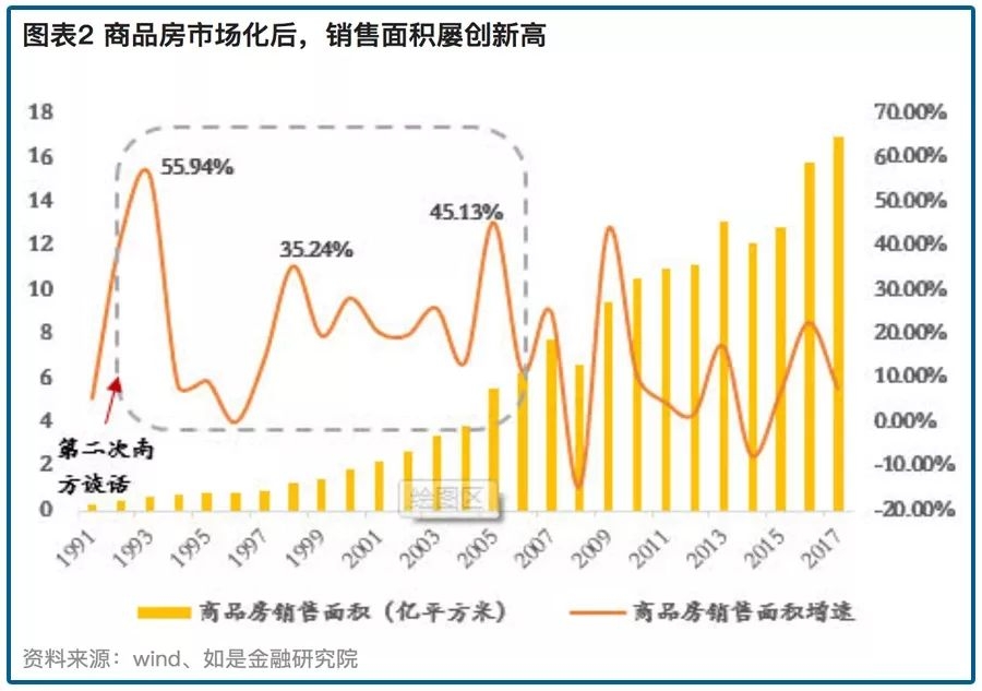 1992年,小平同志第二次“南方讲话”,这一年诞生了一大批企业家,他们也被称为“92派”。其中很重要的一个方向就是房地产,1992年南巡讲话市场经济确立,商品房市场化是大势所趋。