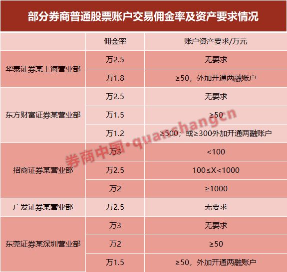 招商证券某营业部经理向记者表示:“交易佣金与资产的交易量挂钩。1000万以上的资产,可以申请佣金调整至万2;100万以上的资产,调整至万2.5;100万以下的资产,最低是万3。”