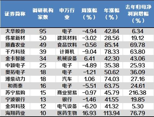 (△被超10家机构集中调研的上市公司名单)