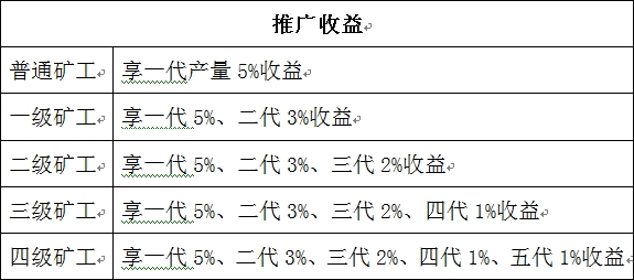 A:上线后只需要推广就行了,推广我们不负责的。就是打广告啊,发帖啊,拉群啊这些。就像组建微信群这种的,都是免费的。说实话前期参加早的都是赚钱的,因为买矿机早,自己的币也多,后期涨了,都赚钱的。这些忠实客户也会帮推拉人的,邀请人送算力,邀请人送小矿机。