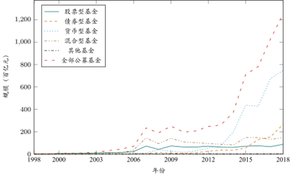 我国公募基金行业从本世纪初开始至今已发展到超过14万亿元的规模。从图1可以看出,2013年是我国公募基金规模爆发式增长的起点。但增长主要源于货币型基金,而其它类型的基金,特别是股票型基金的发展则波澜不惊,自2009年以来其规模就在原地踏步。而偏股、偏债型基金也逐渐相对萎缩。