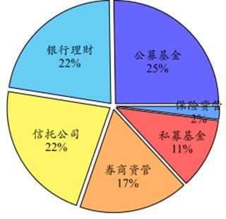 在大资管时代,银行理财、信托公司、券商资管、私募基金、保险公司纷纷涌入资管行业。但至少从目前来看,公募基金仍然是资管业务的主渠道、主力军。央行数据显示(详见图9),截至2018年,公募基金的资管业务规模以25%的占比,居同业之首。