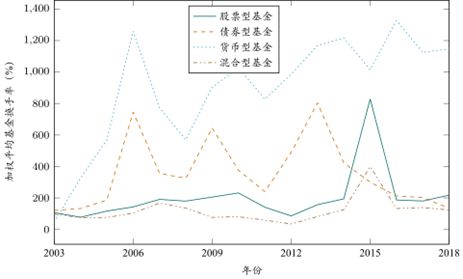 基金申赎可以用基金投资者的换手率来衡量。我们对换手率的定义是,针对每只基金用每年申购金额、赎回金额的总和除以该基金当年的平均市值。图7显示,2015年的股市牛市和2013年的债市牛市期间,股票型基金、债券型基金的换手率都达到8倍的峰值。在其他年份里,各类型基金换手率也达到了1到2倍,这意味着基金投资者差不多在1年左右的时间里就会退出基金。