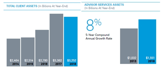 最重要的是,嘉信理财的投资顾问服务在近5年来保持8%左右的复合增长率。