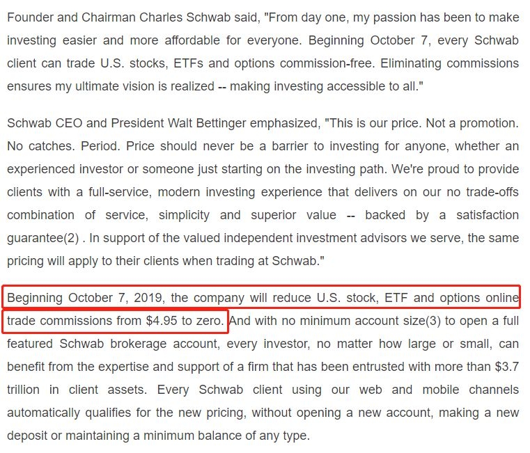 全球金融圈惊呆了!美国最大在线券商突然宣布零佣金,对手应声大跌26%!一个时代要结束了?