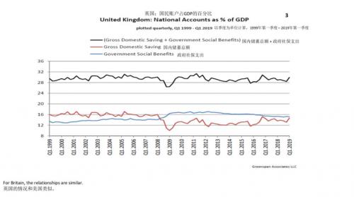 因为人口老龄化,美国、英国等社会福利支出出现显著增长,福利的支出挤占了国内储蓄总额的空间,进而挤出了国内投资总额,后者正是生产力增长的主要决定性因素。
