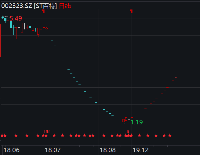2018年7月,公司涉嫌构成违规披露、不披露重要信息罪,被中国证监会移送公安机关,公司股票实行“退市风险警示”特别处理,股票简称由“雅百特”变更为“*ST百特”。自此,该股票一度走出连续27个一字跌停板。