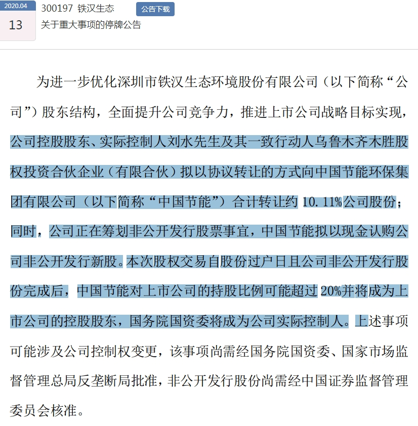 12日晚间,尚在停牌期的铁汉生态,就“品尝”了这一套餐。