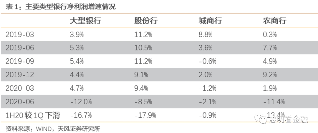 上半年业绩利空落地,预计上市银行1H20盈利增速-9%左右