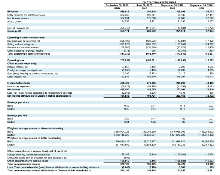 猎豹移动2020Q3财报截图
