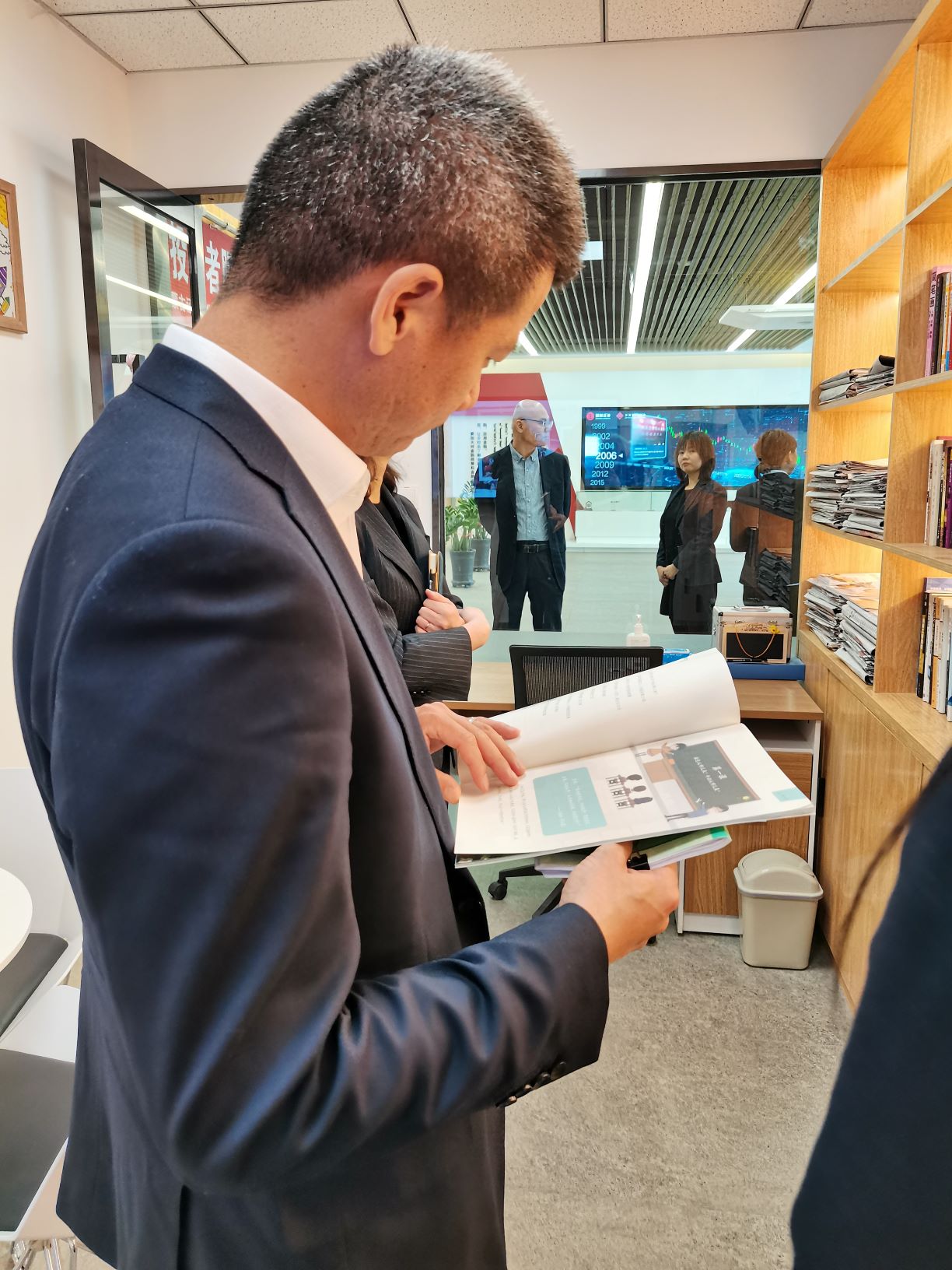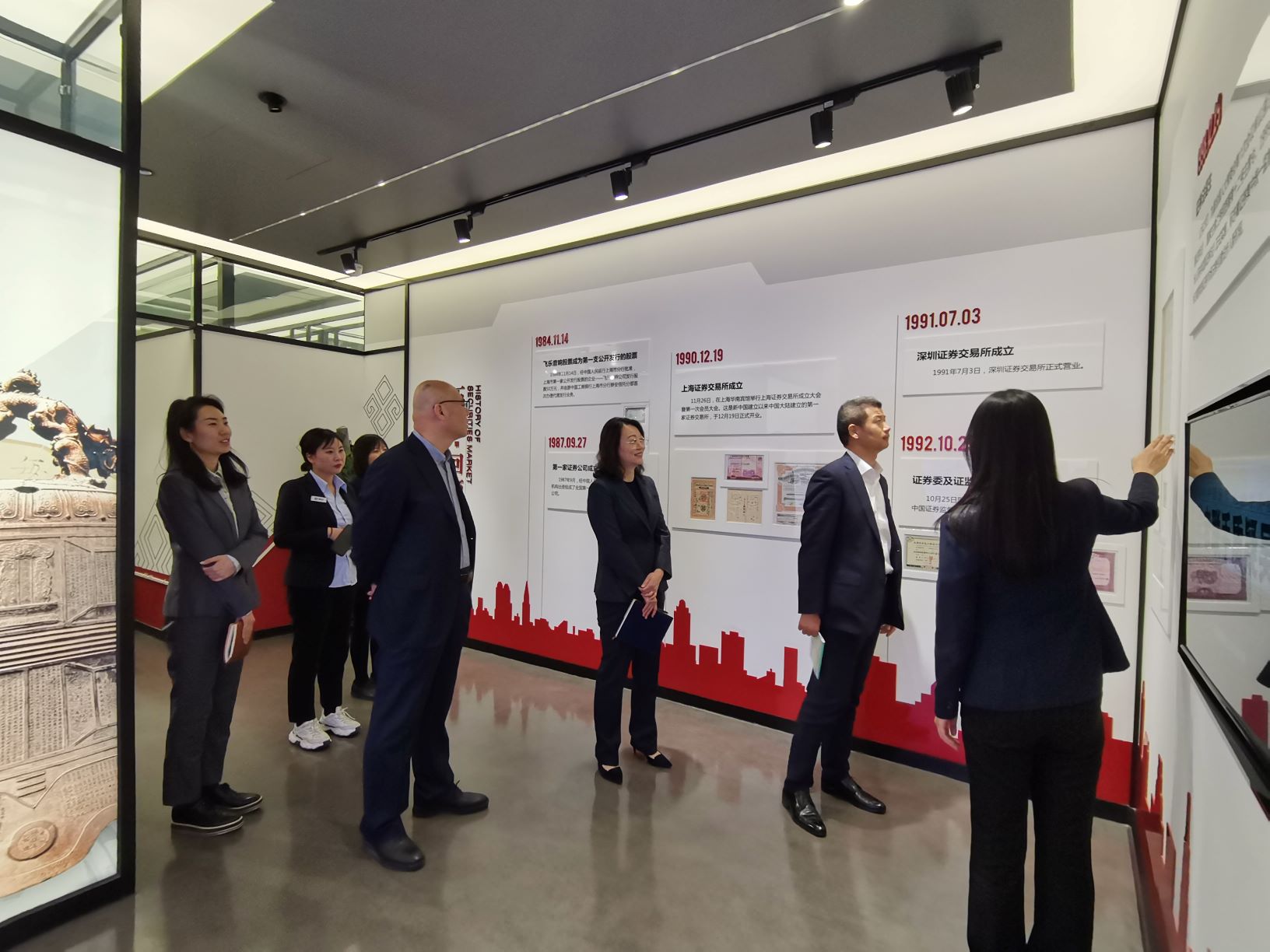活动开始前,在工作人员的带领下,投资者服务部副总经理黄爱国一行对国融证券投教基地进行了参观。过程中,黄总与基地工作人员就投教产品、投教活动等方面进行了交流。