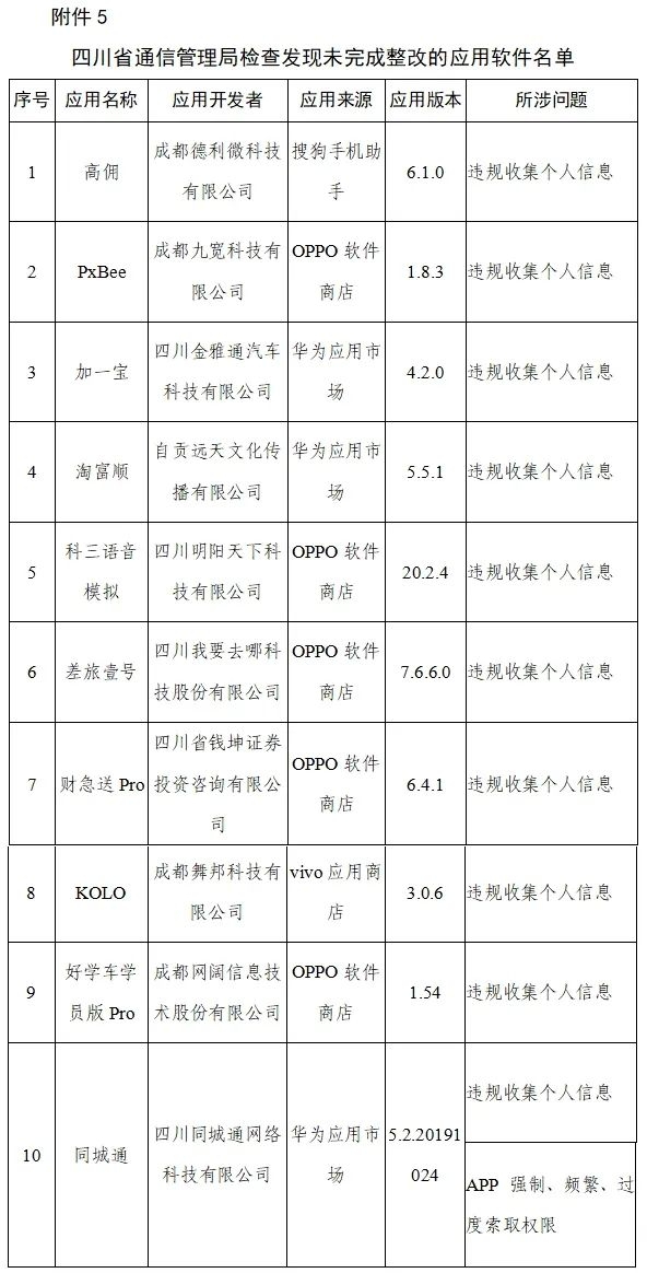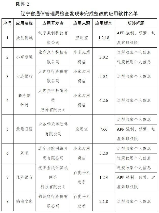 通报称,截至目前,尚有71款App未完成整改。辽宁省、浙江省、广东省、四川省、宁夏回族自治区通信管理局检查发现仍有74款App未完成整改,这145款App应在7月26日前完成整改落实工作。逾期不整改的,工信部将依法依规组织开展相关处置工作。