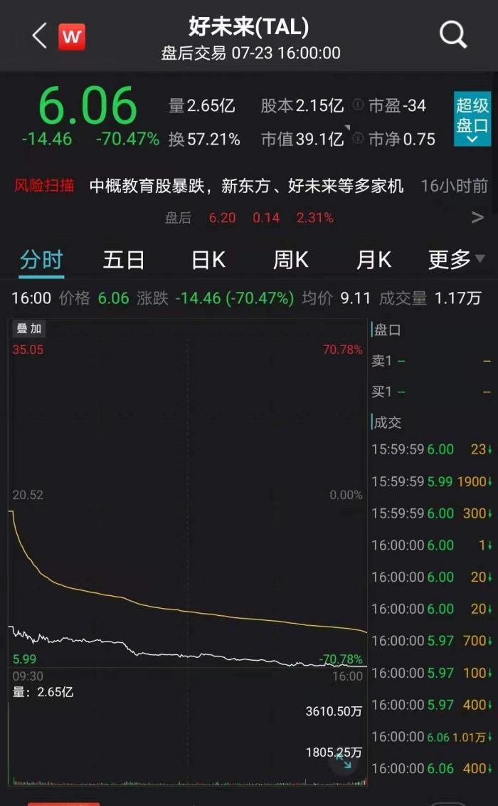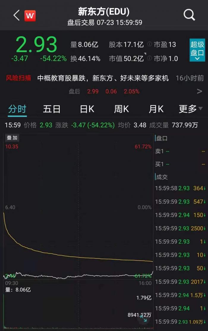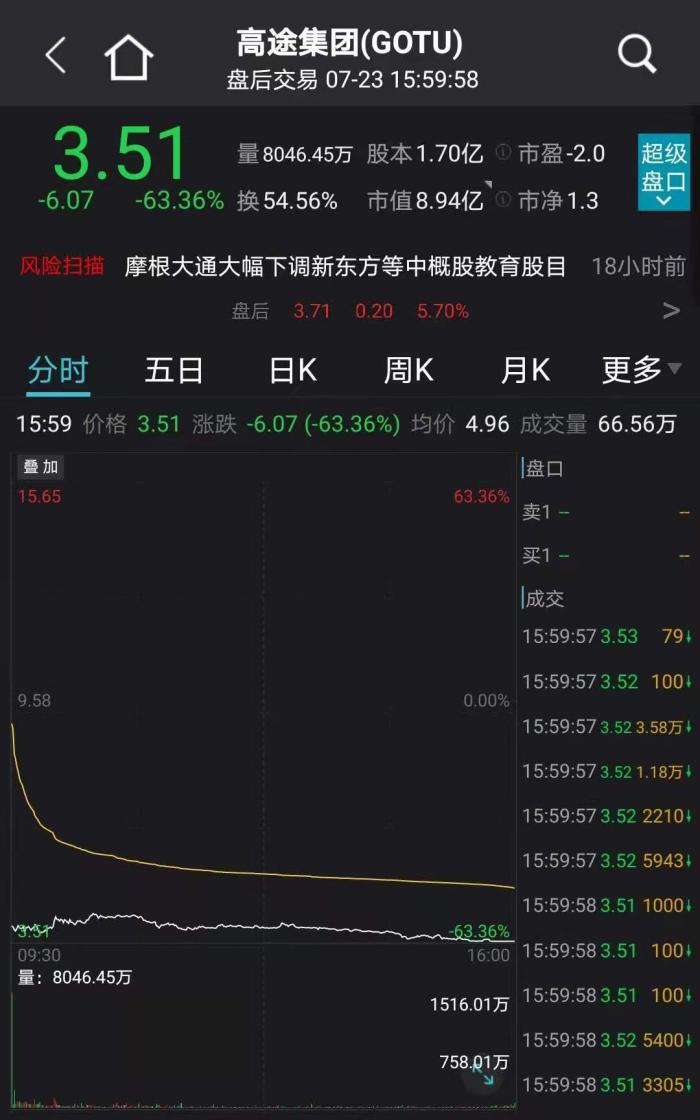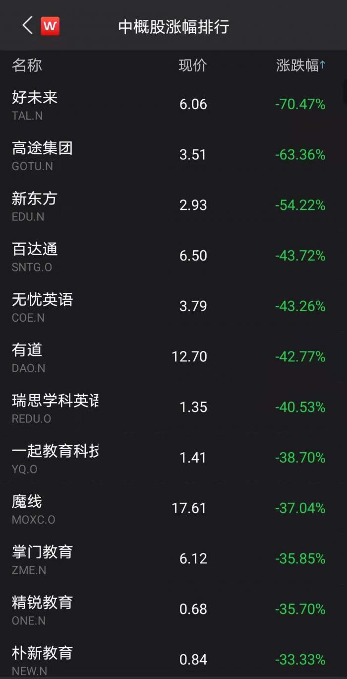 三大中概教育股股价遭腰斩,好未来跌70.47%,高途集团跌63.36,新东方跌54.22%。