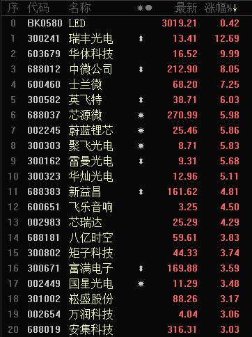 另外,受政策扶持的科技板块同样抗跌,LED、芯片等概念涨幅居前。