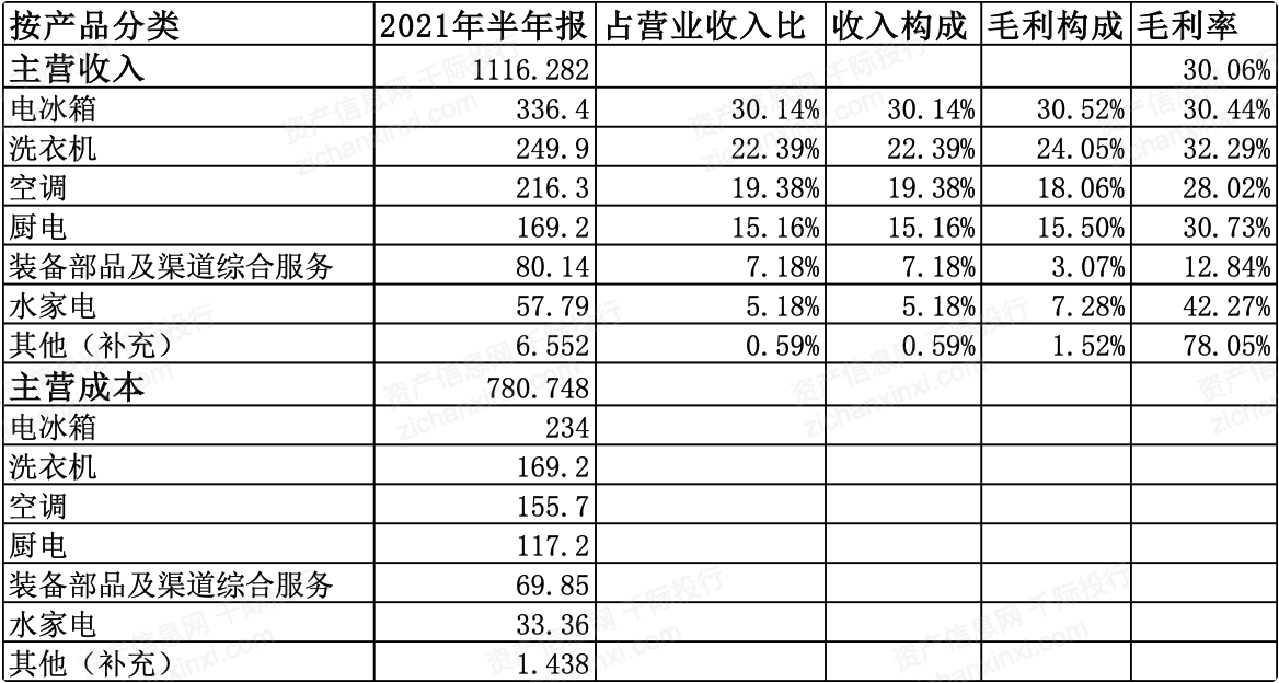 表 海尔智家(600690.SH)收入成本分析(亿元)