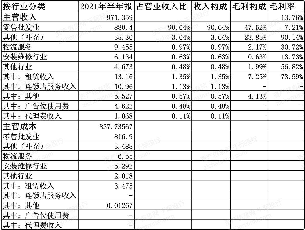 表 苏宁易购(002024.SZ)收入成本分析(亿元)